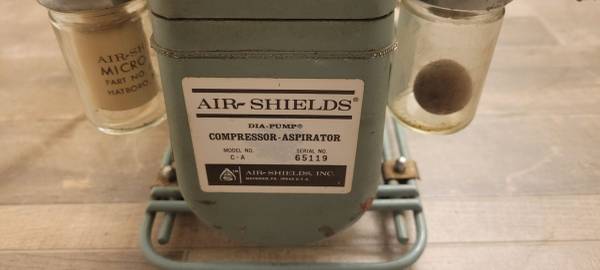 Vintage Air-Shields diaphragm aspirator and compressor pump model no. C-A, serial no. 65119, originally used in medical and laboratory settings. This is a solid, heavy-duty, mid-century piece of equipment for collectors, display, industrial décor, or steampunk-style environments. $285 or best offer.